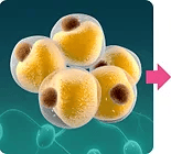 3. De laserstralen creëren poriën in de celwand waardoor de inhoud van de cel ontsnapt